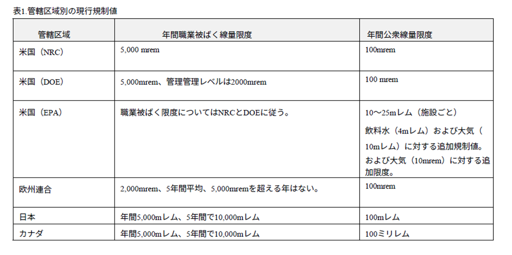 • 自然放射線との比較: 米国の平均的な自然放射線量は年間約620 mremである。500 mremという基準は、自然の変動範囲内に収まっており、公衆の安全を十分に担保しつつ、不必要な規制コストを排除できる。